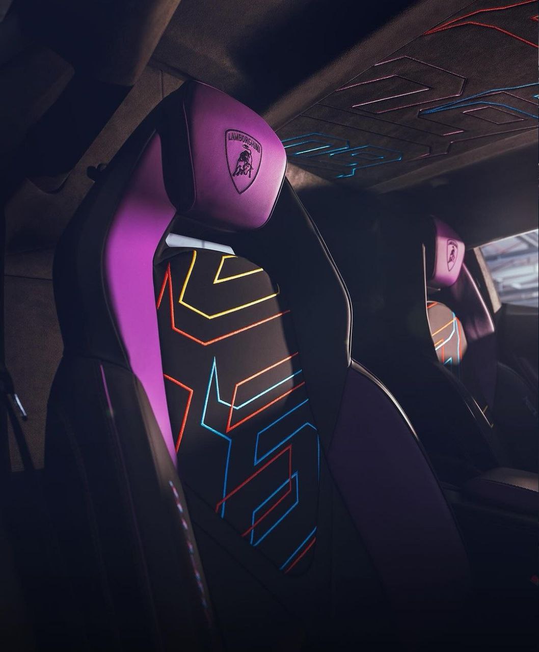 Как и внешний вид, интерьер создает уникальное художественное пространство. Играя с цветами для эффекта асимметричного дизайна, на создание интерьера потребовалось еще 220 часов. В дополнение к двухцветному кожаному салону Nero Ade и Viola Acutus, спинки сидений, дверные вставки и обивка потолка украшены вышивкой логотипа 60-летия с использованием сочетающихся теплых и прохладных цветов кузова. Даже обычно красная крышка запуска и остановки теперь выделена затененными цветами мазков. На капоте автомобиля также виден тонкий логотип 60-летия.